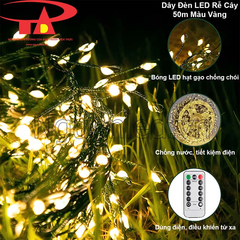 - Tên sản phẩm: Dây đèn LED rễ cây 50m màu vàng