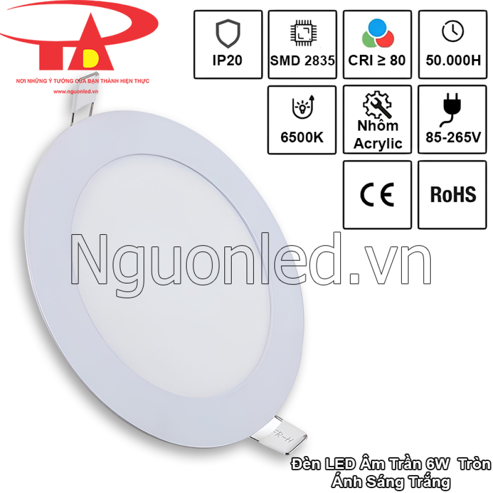 - Tên sản phẩm: Đèn led âm trần 6W tròn màu trắng