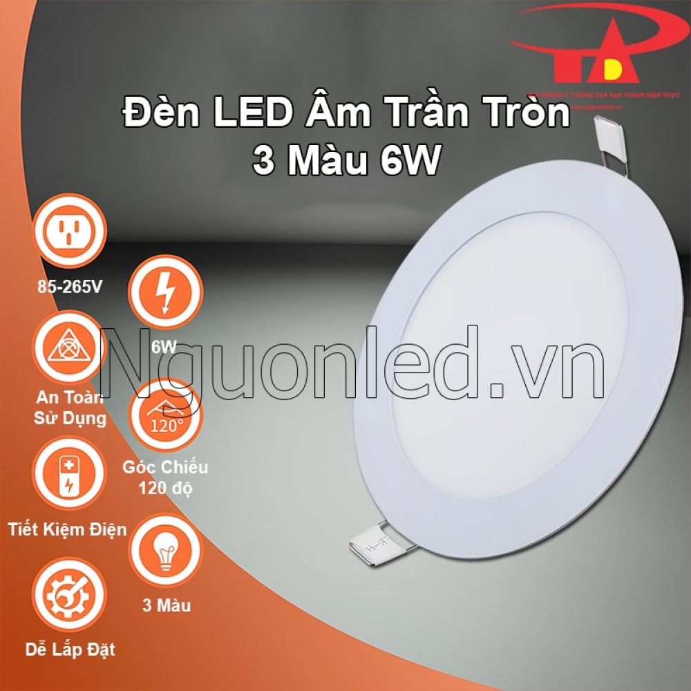 - Tên sản phẩm: Đèn led âm trần tròn 3 màu 6W