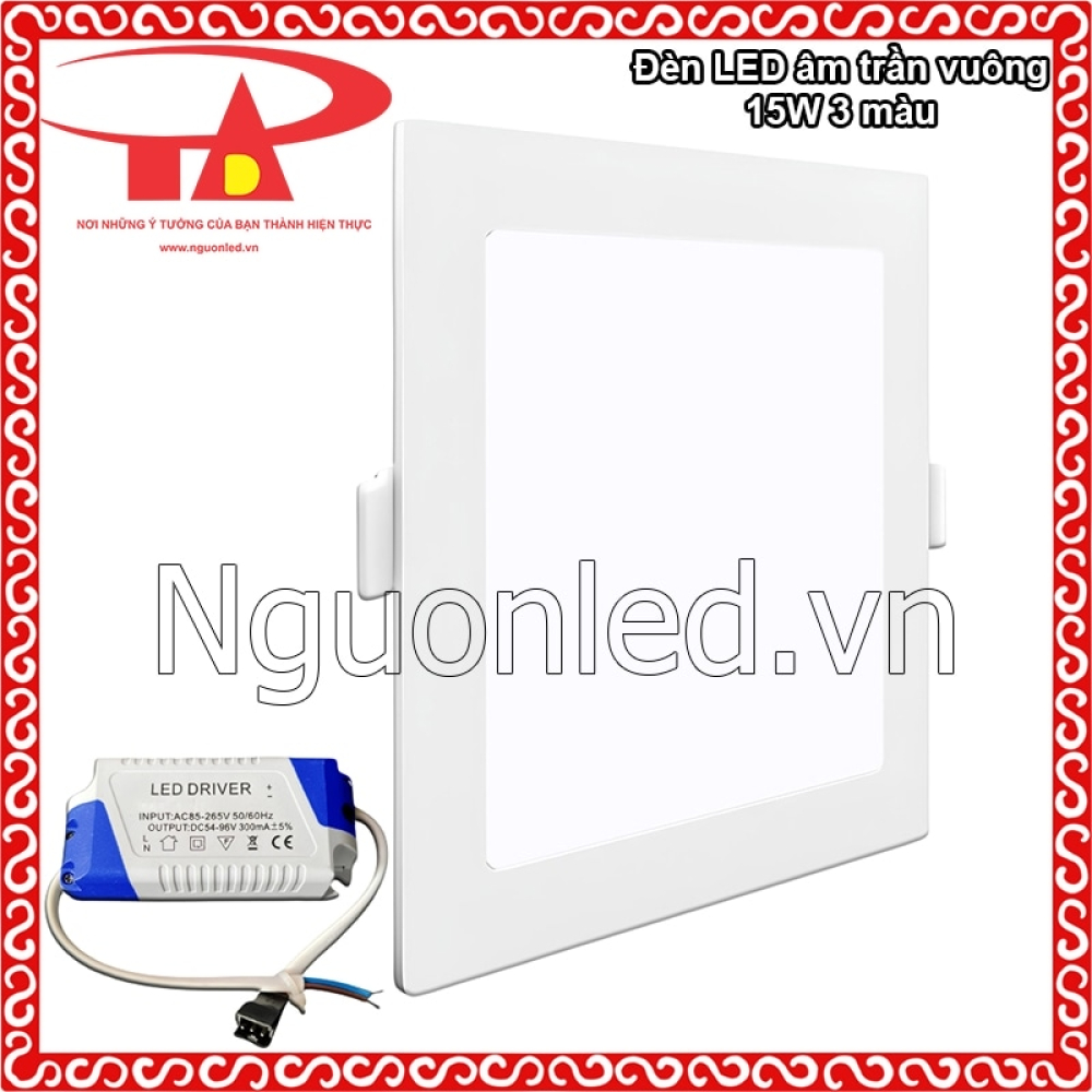 - Tên sản phẩm: Đèn led âm trần vuông 3 màu 15W