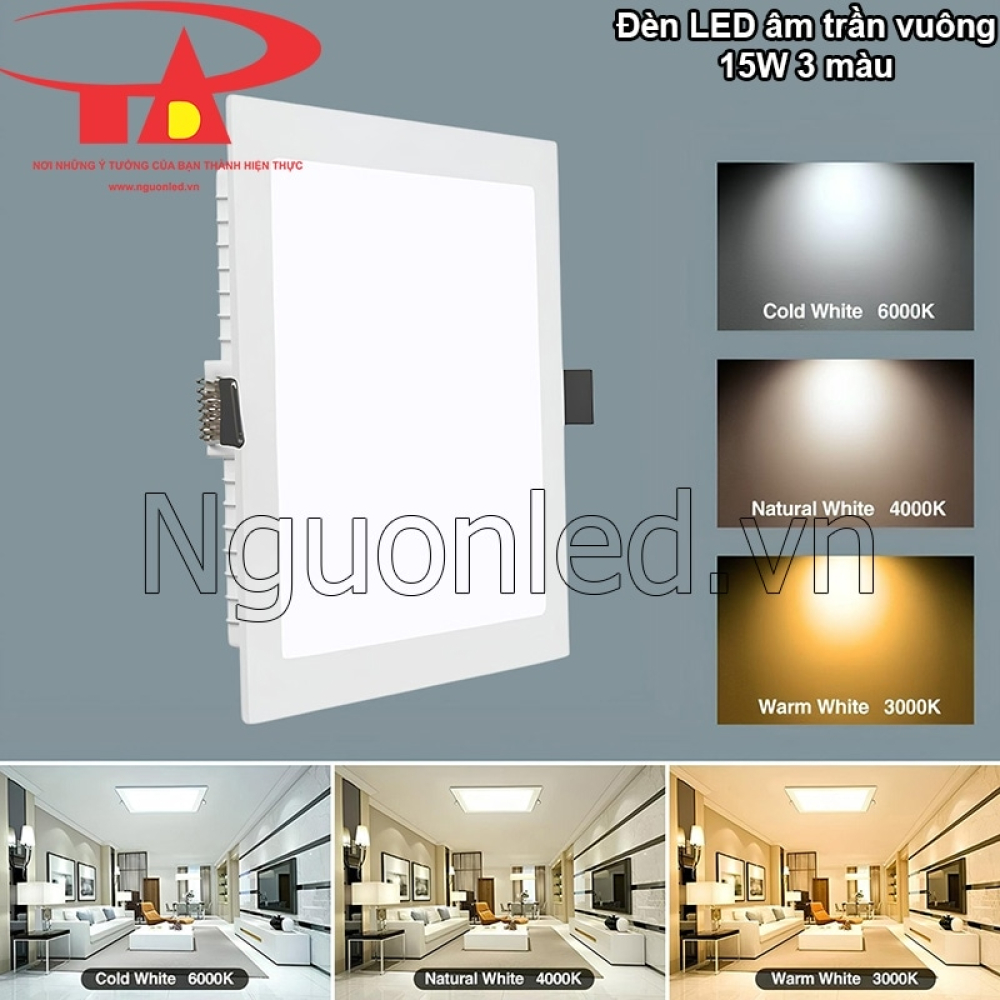 - Đèn led âm trần 15W màu 4000K cung cấp khoảng 1500 Lumen.