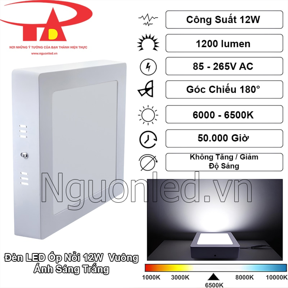- Đèn LED ốp nổi 12W vuông màu trắng là lựa chọn hoàn hảo cho những ai đề cao cả thẩm mỹ và hiệu quả chiếu sáng. Thiết kế khung nhôm cao cấp giúp tản nhiệt nhanh, bảo vệ chip LED bền bỉ, ánh sáng lan tỏa đều và tự nhiên, mang lại cảm giác dễ chịu cho mắt. Công nghệ LED tiên tiến giúp đèn đạt hiệu suất cao nhưng vẫn tiết kiệm điện, không gây nhấp nháy, an toàn cho thị lực. Kiểu dáng vuông vức, gam trắng tinh giản tạo nét sang trọng, dễ dàng hòa hợp với mọi không gian sống hiện đại.