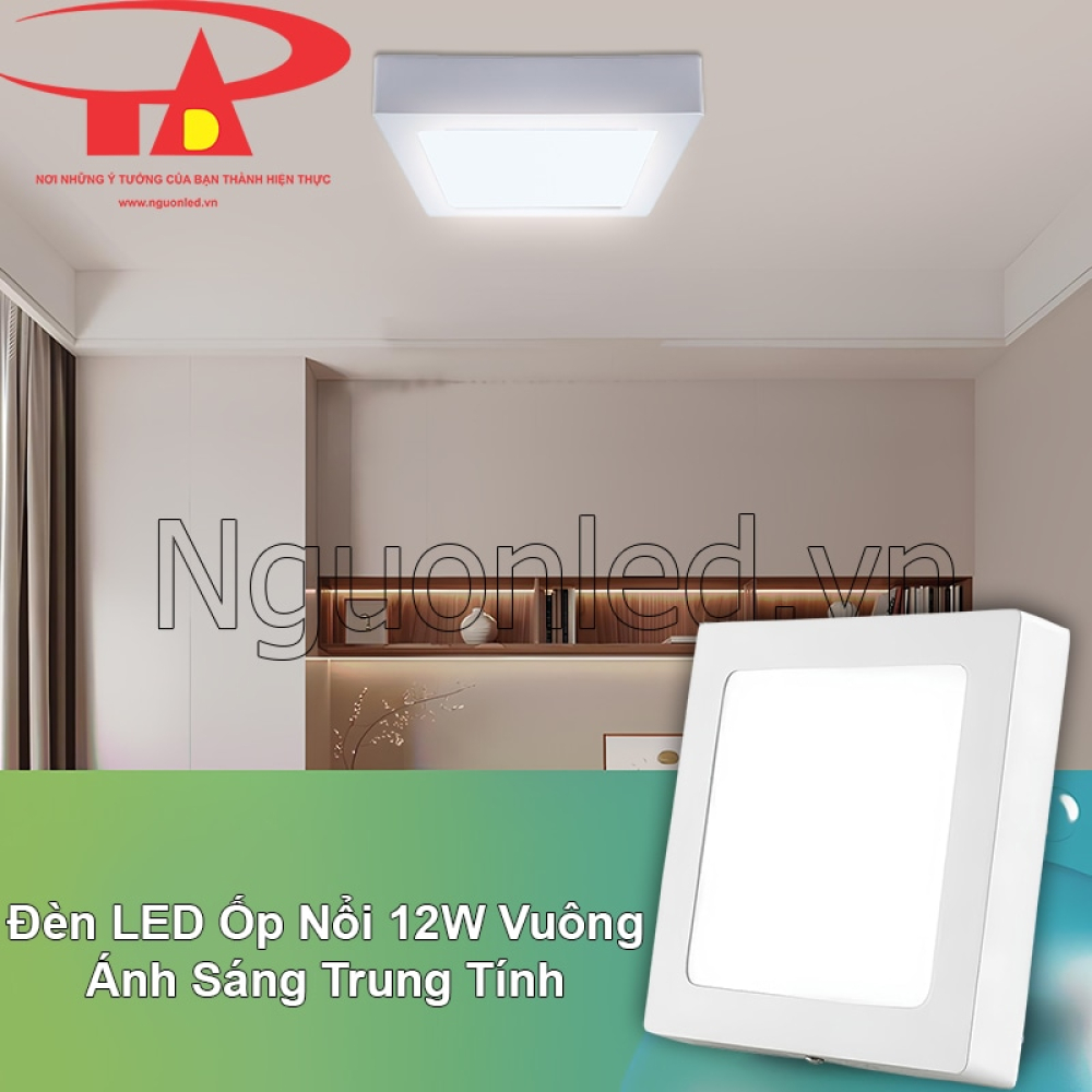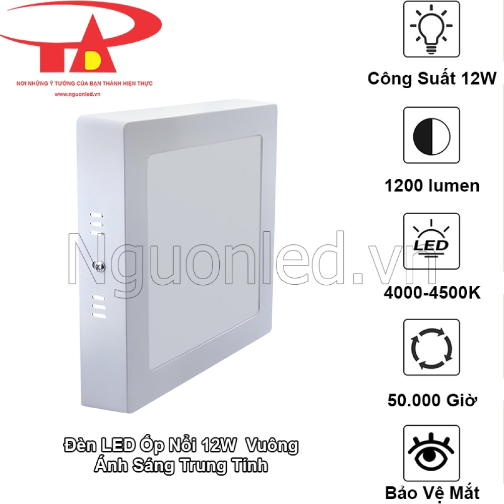 - Trong kỹ thuật chiếu sáng hiện đại, ánh sáng trung tính 4000 – 4500K được xem là ngưỡng sáng lý tưởng cho thị giác con người, đặc biệt phù hợp với thói quen sinh hoạt và cảm nhận ánh sáng của người Việt. Đèn LED ốp nổi 12W vuông mô phỏng ánh sáng ban ngày nhưng dịu hơn, giúp người dùng cảm thấy dễ chịu và tự nhiên hơn trong mọi không gian sống.