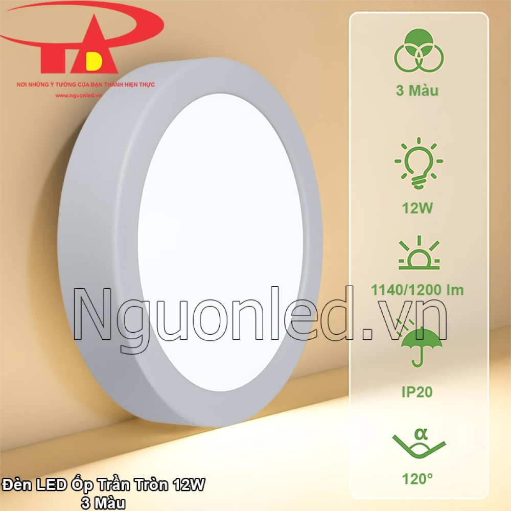 - Trong thời đại mà con người ngày càng chú trọng đến sức khỏe và môi trường sống, đèn LED ốp trần tròn 12W 3 màu không chỉ là thiết bị chiếu sáng mà còn là biểu tượng của “ánh sáng xanh” – ánh sáng của lối sống văn minh và có trách nhiệm.