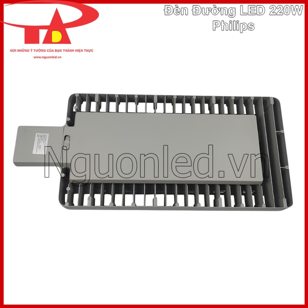 - Ở các hệ thống chiếu sáng đường phố, thiết kế của bộ đèn không chỉ cần bền bỉ mà còn phải thuận tiện cho quá trình thi công thực tế. Mẫu đèn đường LED 220W Philips được thiết kế với cấu trúc cân đối và kích thước hợp lý chiều dài khoảng 650 mm và chiều rộng 295 mm, giúp bộ đèn giữ được sự chắc chắn cần thiết nhưng vẫn đảm bảo tính gọn gàng khi lắp đặt trên cột chiếu sáng. Nhờ thiết kế này, đèn đường không tạo cảm giác cồng kềnh, đồng thời giúp việc vận chuyển và thi công tại công trình trở nên dễ dàng hơn.