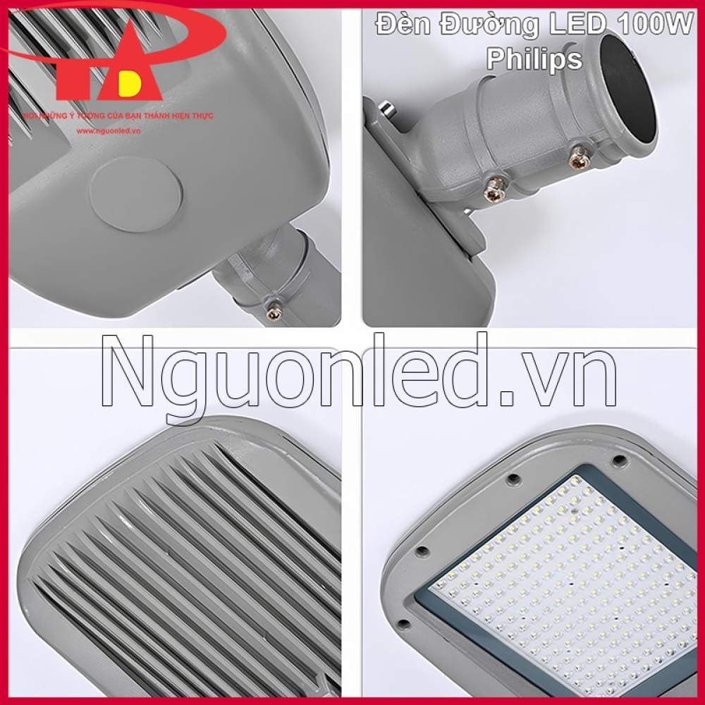 - Trên thị trường hiện nay, nhiều sản phẩm đèn đường LED 100W có thiết kế bên ngoài khá tương đồng, tuy nhiên chất lượng thực tế lại phụ thuộc lớn vào linh kiện và quy trình hoàn thiện của từng đơn vị cung cấp. Với dòng đèn của An Đức Phát, sản phẩm được trang bị chip LED Philips và tăng phô Philips chính hãng, giúp hệ thống chiếu sáng vận hành ổn định, ánh sáng duy trì đều và bền bỉ trong suốt quá trình sử dụng. Nhờ linh kiện chất lượng cao cùng thiết kế tối ưu, đèn không chỉ mang lại hiệu quả tiết kiệm điện năng đáng kể mà còn duy trì tuổi thọ cao khi hoạt động trong môi trường ngoài trời.